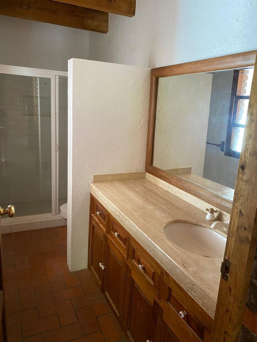 Distribuida en dos niveles, la propiedad cuenta con una acogedora sala con chimenea, un comedor amplio y una cocina integral totalmente equipada. Dispone de dos cómodas recámaras, cada una con su baño completo, más un baño de visitas. También incluye área de lavado y un cuarto de servicio independiente.