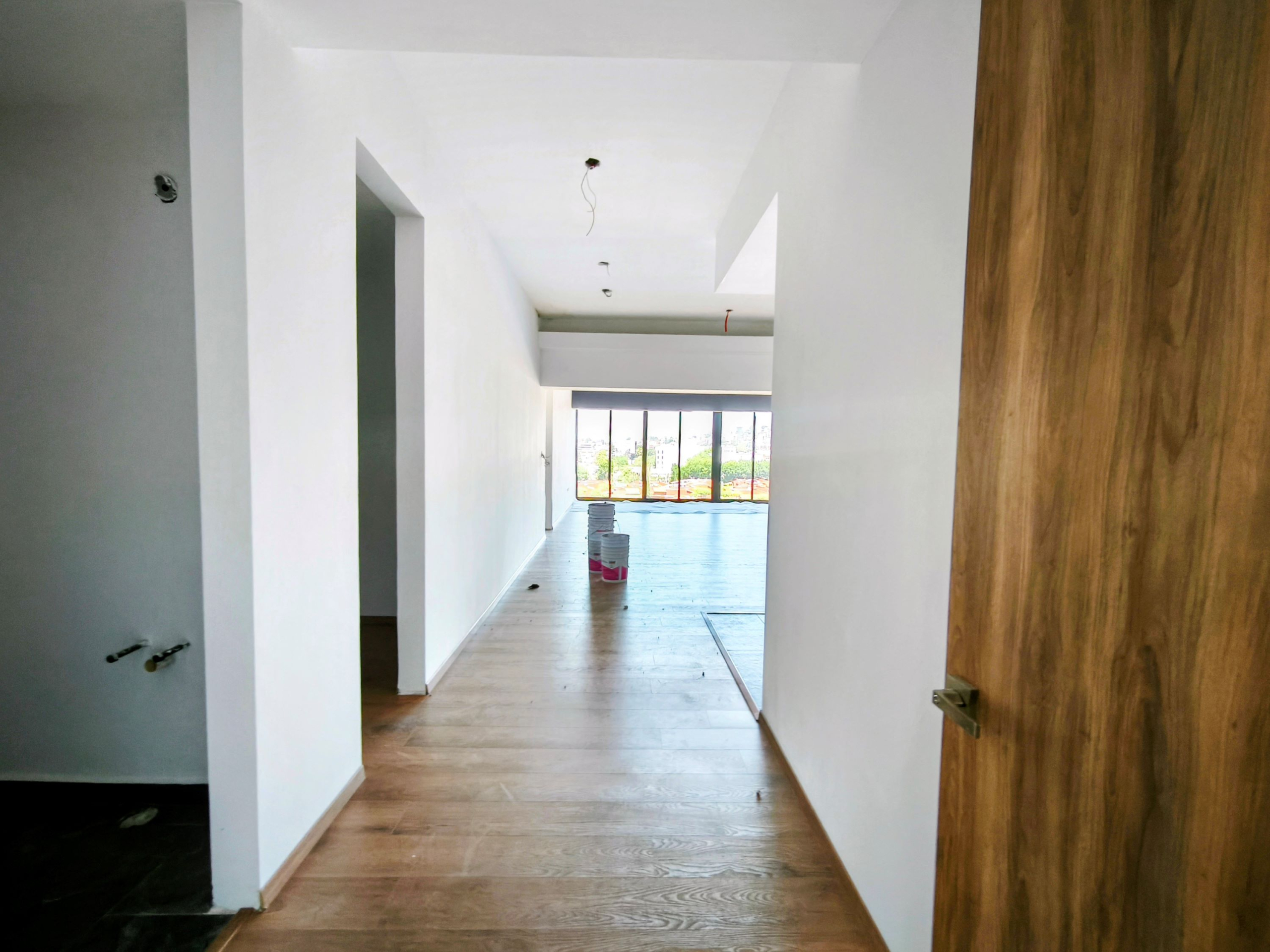 Carpintería en tono nogal en todo el desarrollo